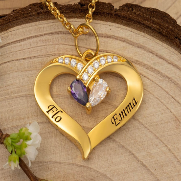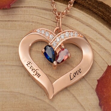 Personalized Heart Shaped Birthstone Chic Necklace With Name Sweet Gift