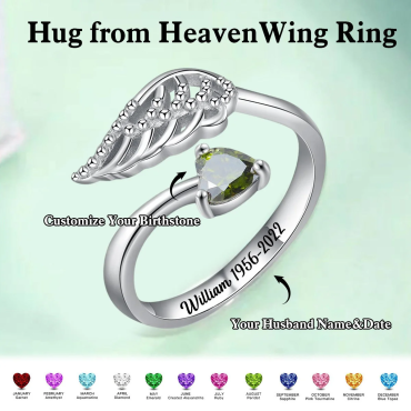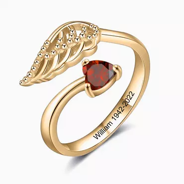 Personalized Birthstone Ring With Chic Wings Memorial Gift For Loved Ones