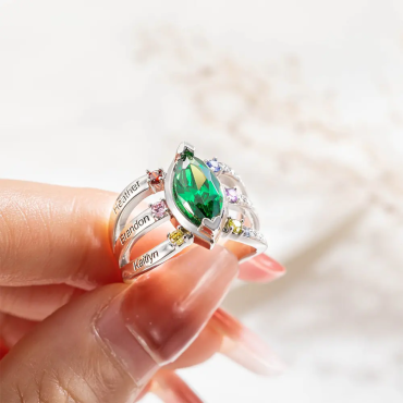 Personalized Birthstone Ring and Engraving Name Sweet Gift For Family