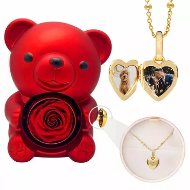 Personalized Bear Jewelry Box Chic With Heart Shape Photo Necklace Valentine's Day Gift