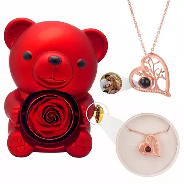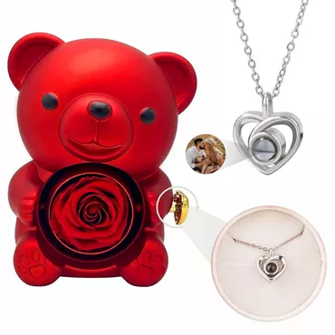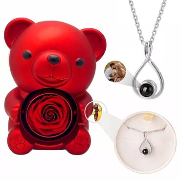 Personalized Bear Jewelry Box Chic With Exquisite Love Projection Necklace Valentine's Day Gift