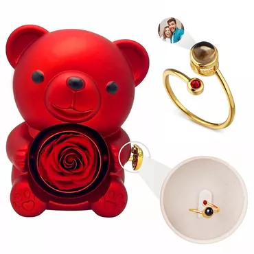 Personalized Bear Jewelry Box Chic With Rose Projection Ring Valentine's Day Gift
