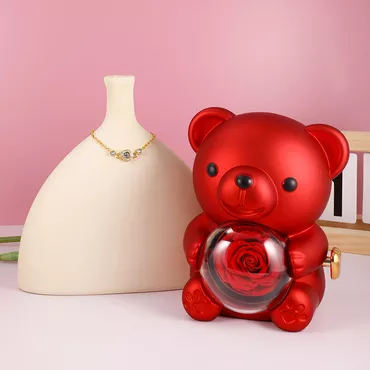 Red Bear Jewelry Box Chic With Eternal Rose Romantic Gift