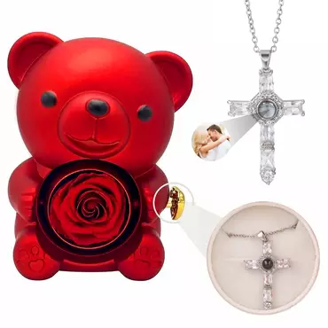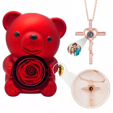 Personalized Bear Jewelry Box Chic With Cross Projection Necklace Valentine's Day Gift