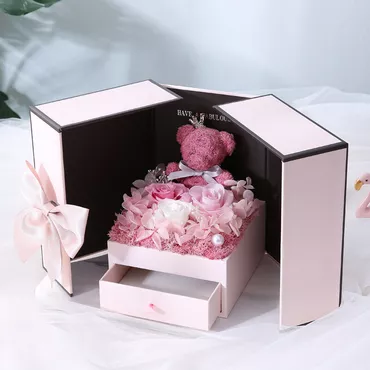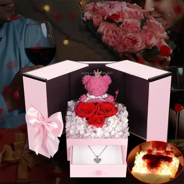 Bear Preserved Flower Double Chic Door Rose Jewelry Box Romantic Gift