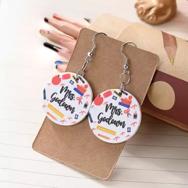 Personalize Apples Pencils Crayons Chic Staplers Acrylic Dangle Earrings With Name Teacher's Day Birthday Gift For Teacher