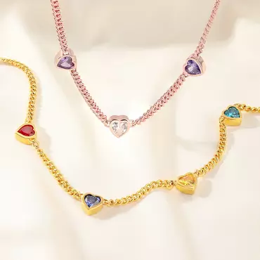 The dainty heart-shaped birthstone is a romantic and heartwarming design. Customizable with the birthstones of one to five children, the necklace cleverly incorporates each child's unique birth information, embodying a mother's love through a dazzling array of gemstones, making it a one-of-a-kind token of family affection.