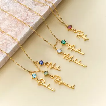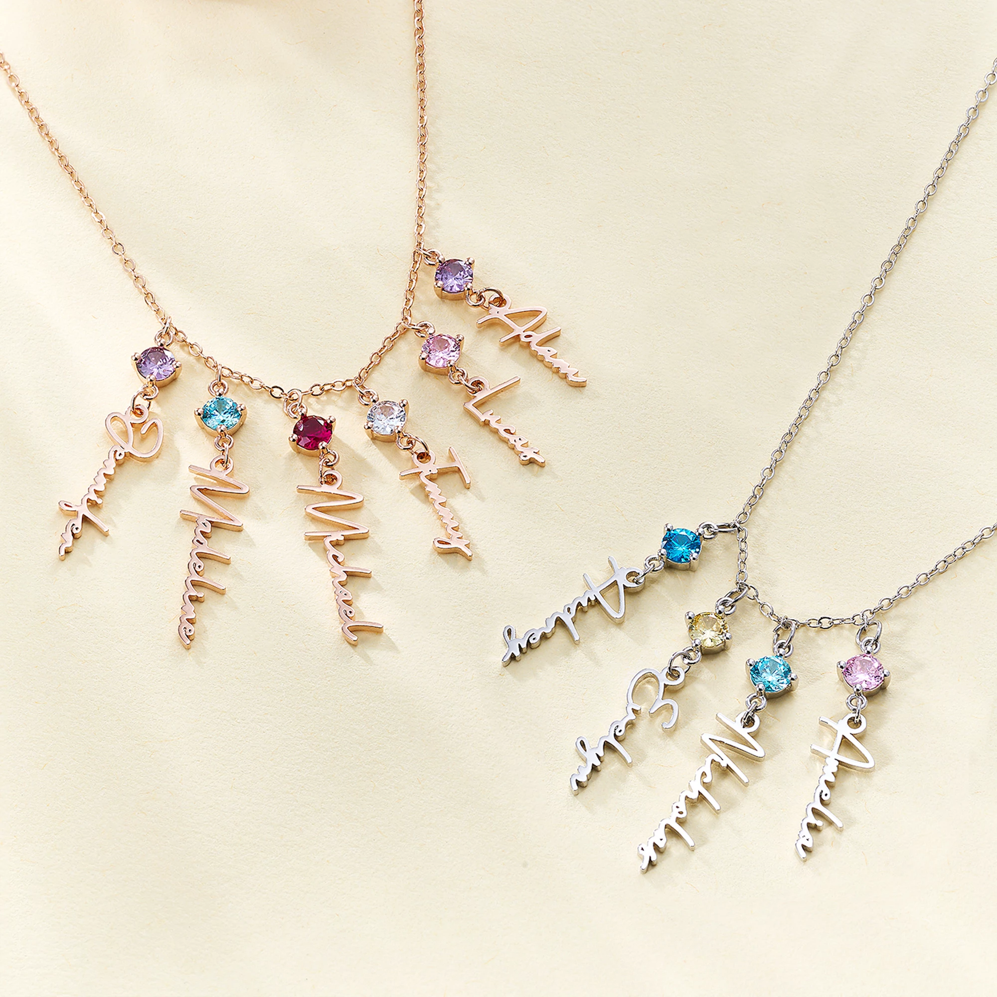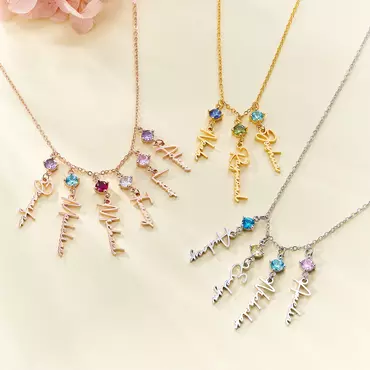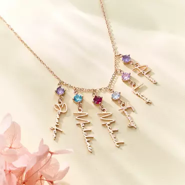 The pendant of this necklace focuses on a charming birthstone design, adding a simple and exquisite beauty to this jewelry. It can be customized with 1-8 birthstones and names to represent each family member, reflecting your unique personality.