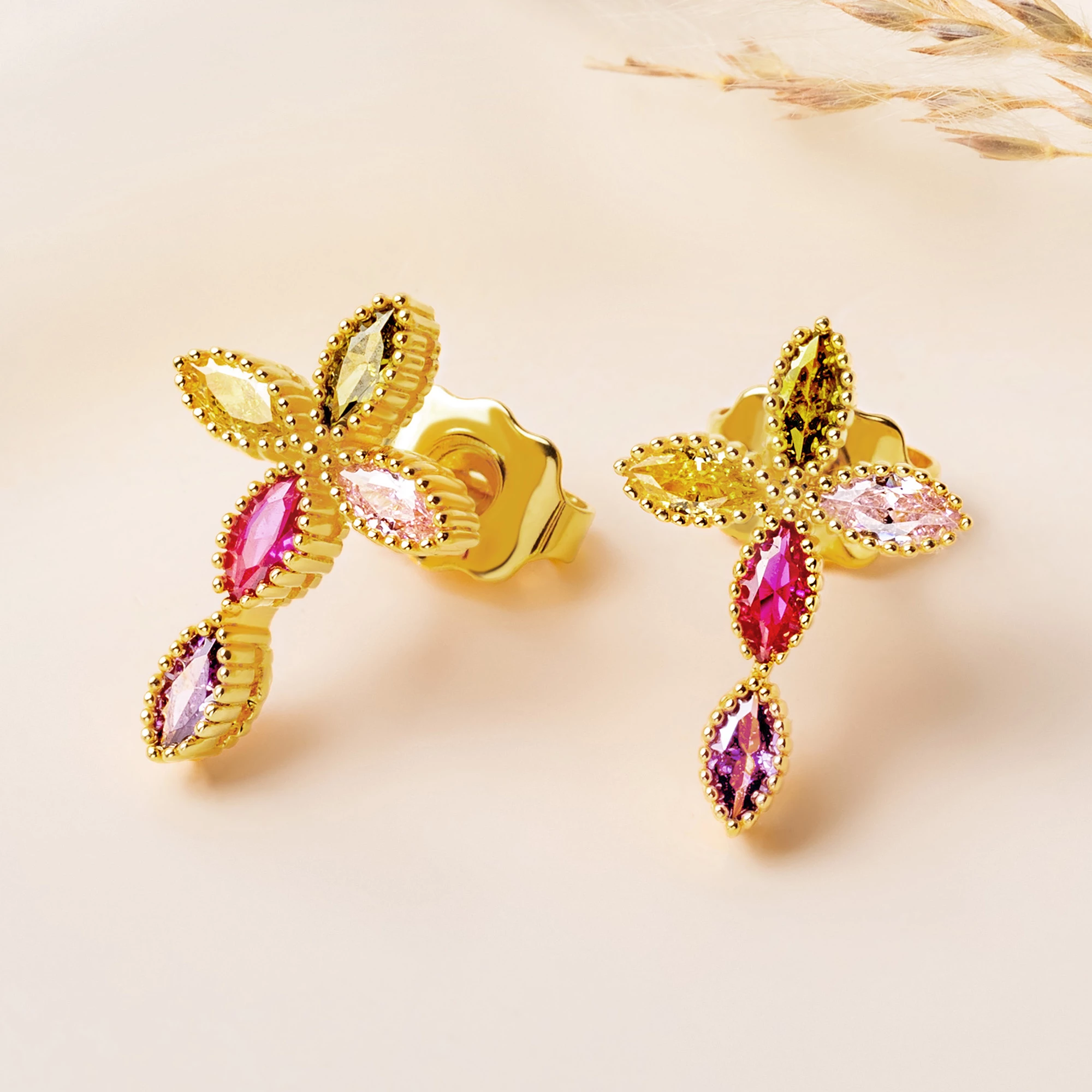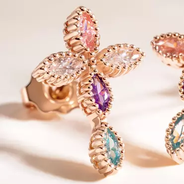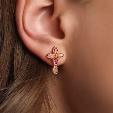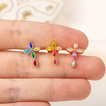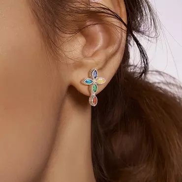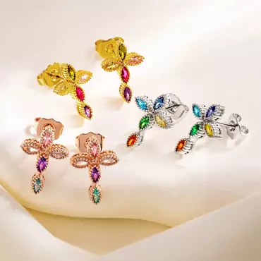The earrings are shaped like a cross, symbolizing the core beliefs of Christianity, while the inlay of each birthstone gives them a unique and personalized feature. You can choose 5 corresponding birthstones according to the birth month of family members to create a visual feast of color matching.