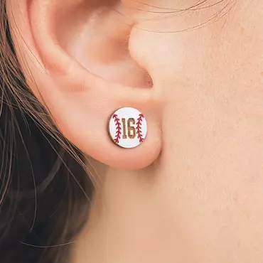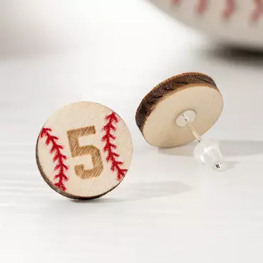 Celebrate your love of baseball with these beautiful wooden baseball earrings. Each earring features the iconic red baseball stitching and can be customized with a meaningful number - whether it's your own, your child's, your team's, or a memory of a special game day. This unique design not only captures the spirit of the sport but also adds a personal touch to your accessories collection.