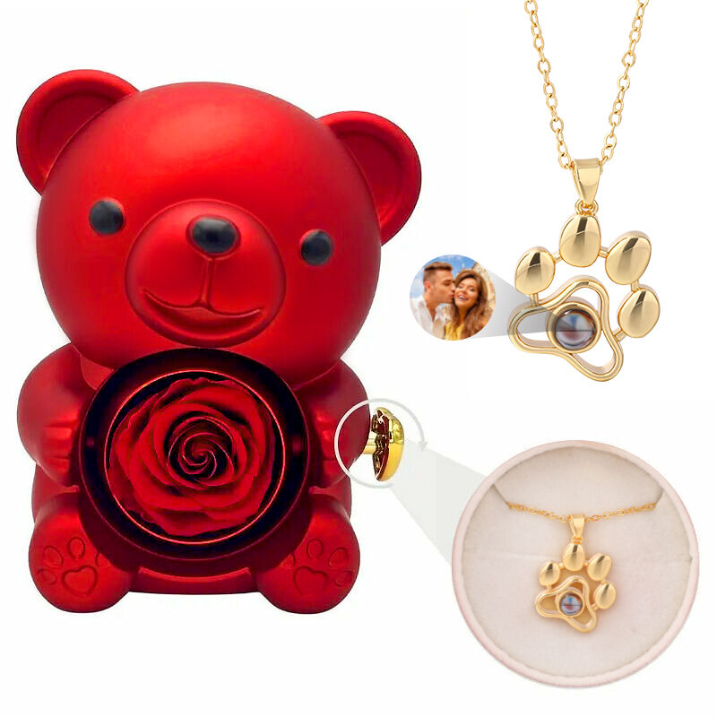 Personalized Bear Jewelry Box Chic With Claw Projection Necklace Valentine's Day Gift