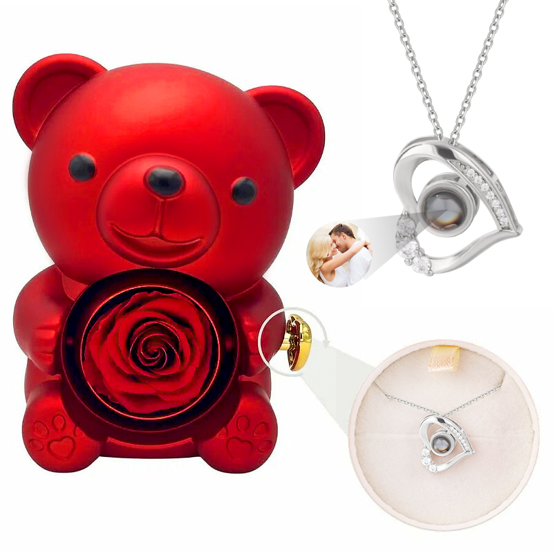 Personalized Bear Jewelry Box Chic With Exquisite Love Projection Necklace Valentine's Day Gift