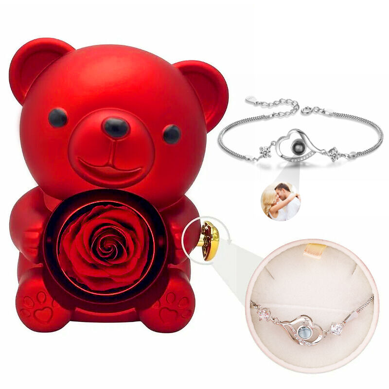 Personalized Bear Jewelry Box Chic With Heart Projection Bracelet Christmas Gift