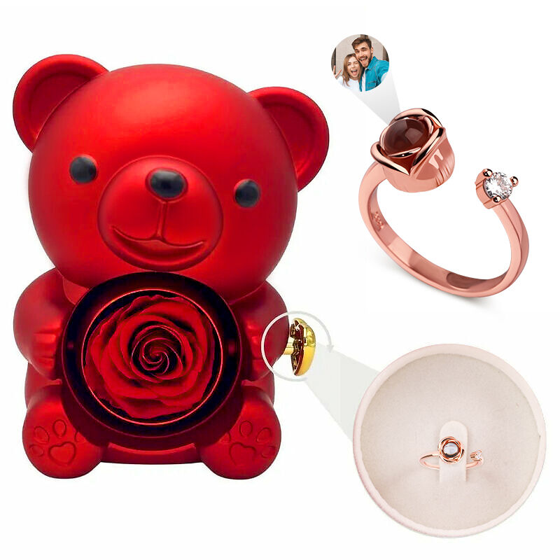 Personalized Bear Jewelry Box Chic With Rose Projection Ring Valentine's Day Gift