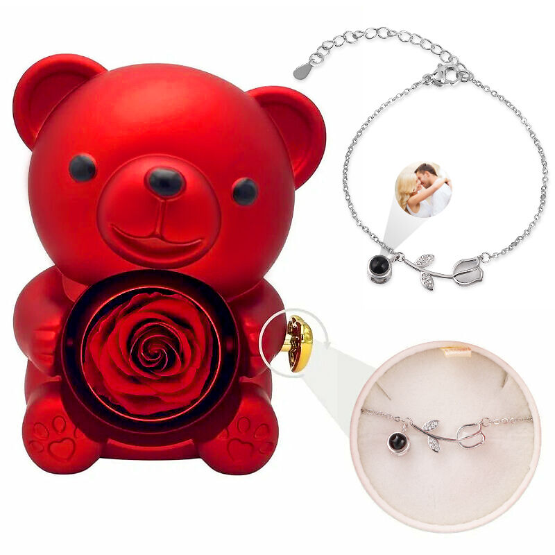 Personalized Bear Jewelry Box Chic With Tulip Projection Bracelet Christmas Gift
