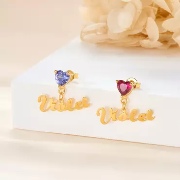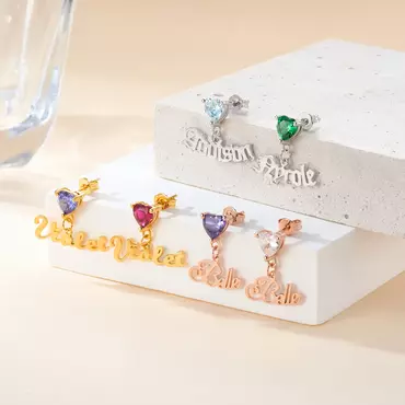 "taste Of Love" Personalized Chic Name Earrings With Birthstone