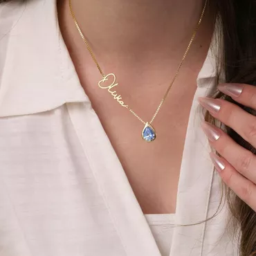 Personalized Birthstone Necklace With Chic Name Gift For Birthday