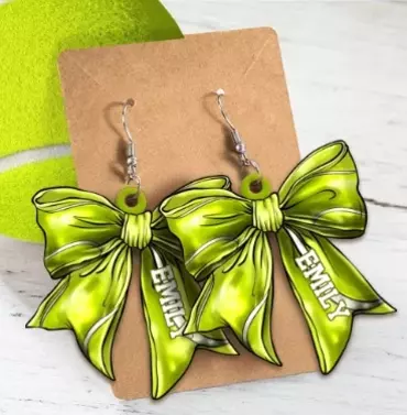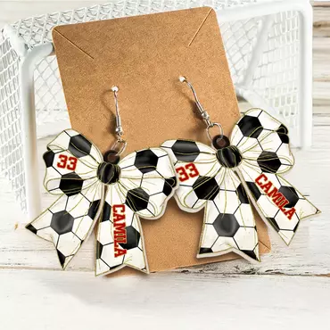 The earrings cleverly combine elements of seven ball sports: football, baseball, soccer, tennis, softball, basketball, and volleyball, with a playful and cute bow-tie outline, showing a dynamic sports style and sweet temperament. At the same time, it supports personalized customization and can be printed with names and numbers, making each pair of earrings your exclusive symbol, showing unparalleled personal charm.