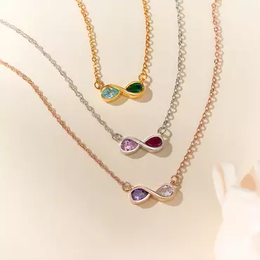 Personalized Double Birthstone Infinity Chic Necklace Dainty Jewelry Wedding Birthday Gift For Couple Friend Women