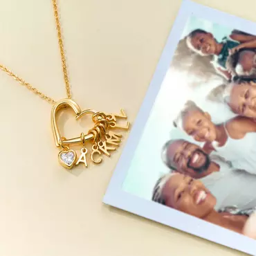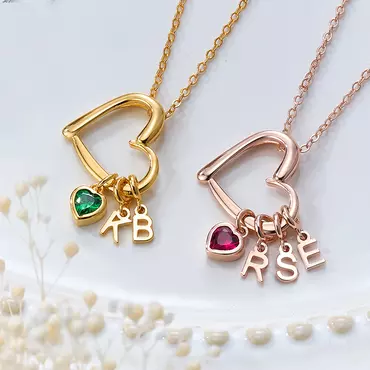 Personalized Heart Birthstone Family Chic Necklace With 1-6 Initial Christmas Valentine's Day Gift For Grandma Mom Woman