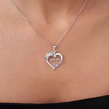 This necklace is inspired by a fantasy unicorn, featuring a heart-shaped pendant that can be customized with a name. The whimsical charm and sparkling cubic zirconia add an extra touch of charm, making it a delightful accessory for any young girl.