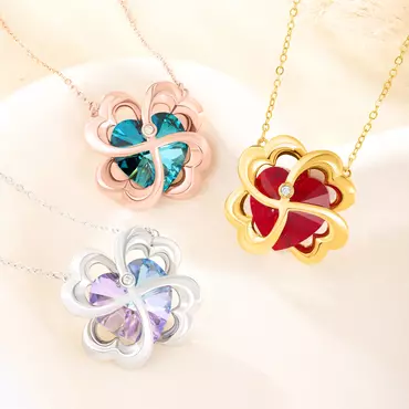 The pendant of the necklace adopts the classic four-leaf clover shape. Each leaf symbolizes good luck and happiness, making it a romantic carrier for conveying blessings and good wishes. At the center of the necklace, you can choose your favorite color of birthstone. Besides, a classic heart-shaped gemstone also represents trust in your emotions, allowing each wearer to bring you unique good luck and happiness.