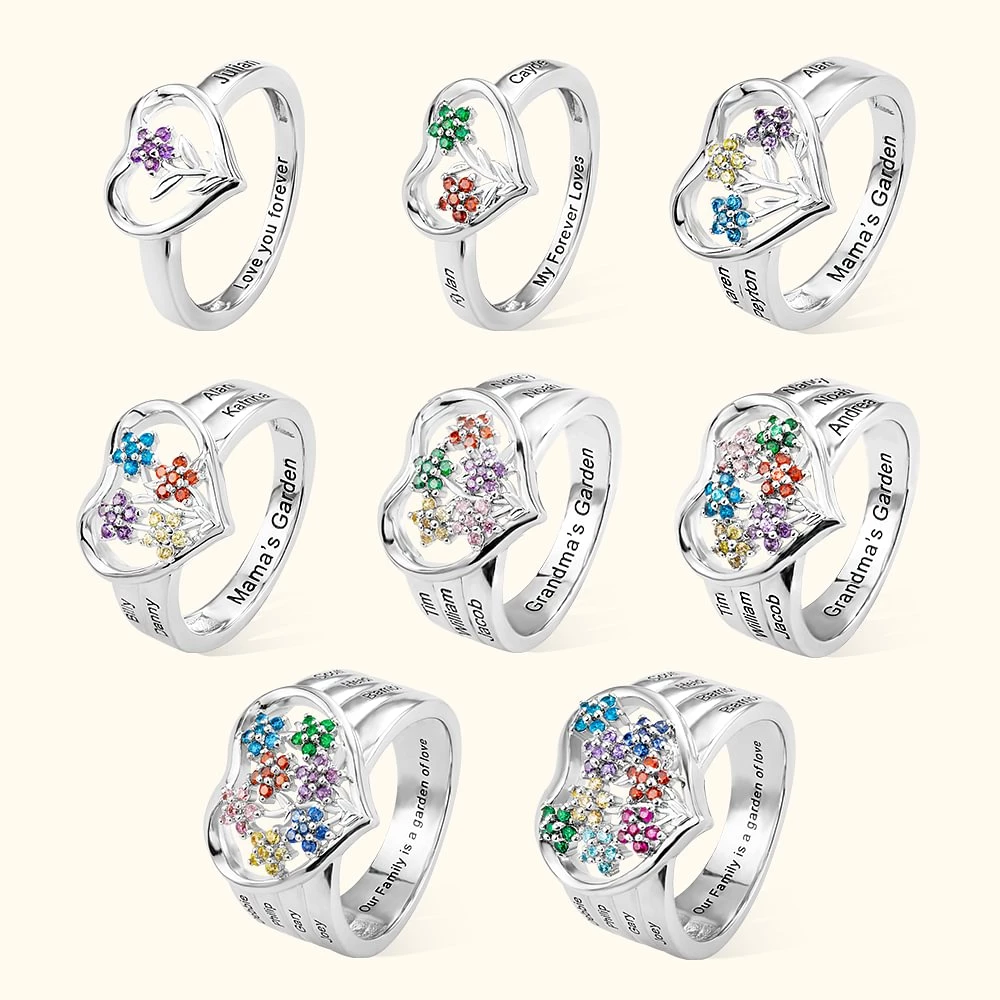 Personalized Grandma's Garden Birthstone Chic Flower Family Ring With Engraved Names Birthday Mother's Day Gift For Grandma Mother