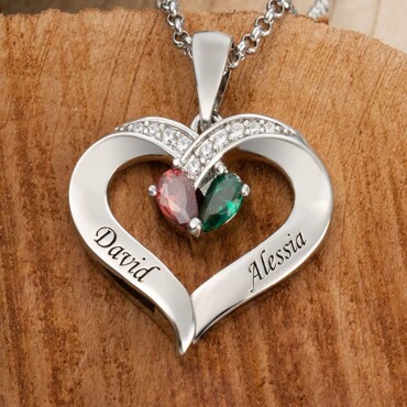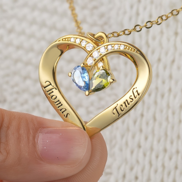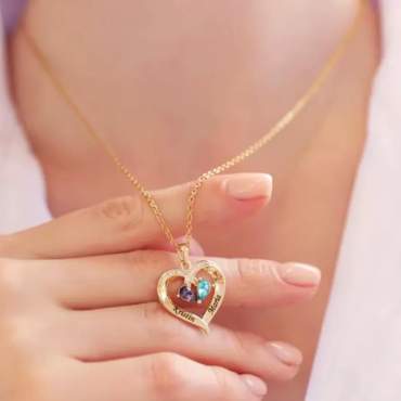 Personalized Heart Shaped Birthstone Chic Necklace With Name Sweet Gift