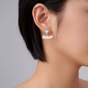 These name dangle earrings are designed for daily grace and offer extensive customization. You can create them with names, initials, or even favorite words—everything is possible. The earrings feature a charming heart-shaped birthstone at the top, adding a touch of sparkle, and the dangling name pendant below makes each pair unique, showing how much you care about someone.