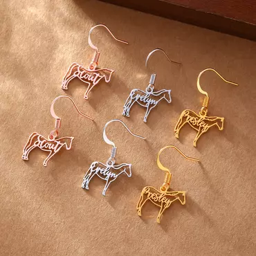 With their delicate size and striking silhouette, these earrings capture the energy and beauty of the horse. The custom name blends harmoniously into the silhouette, adding a personal touch that celebrates equestrian passion. Ideal for equestrian events, club gatherings, or daily wear, they carry a message of courage and independence—helping you express your unique personality.