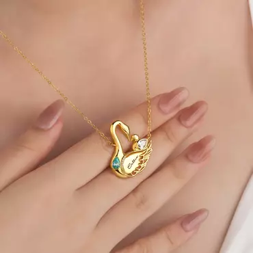 Personalized New Mom And Chic Baby Swan Necklace Birthday Anniversary Christmas First Mother's Day Gift For Women